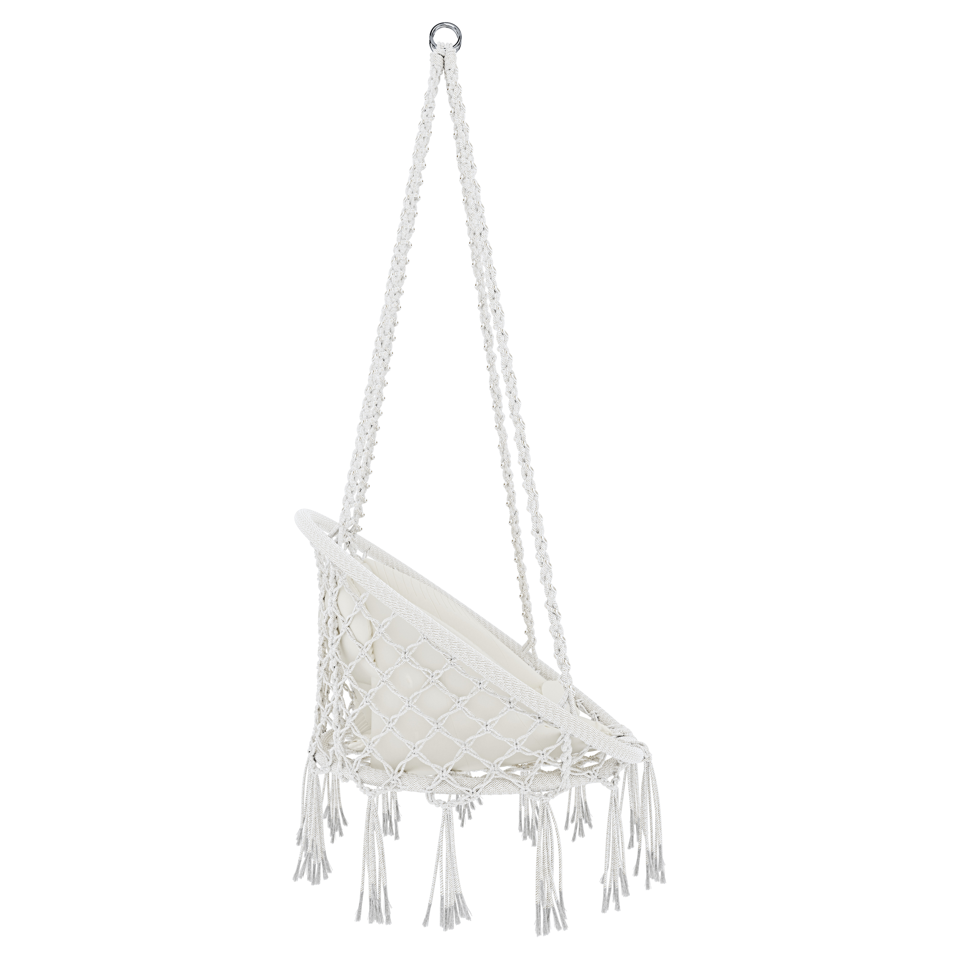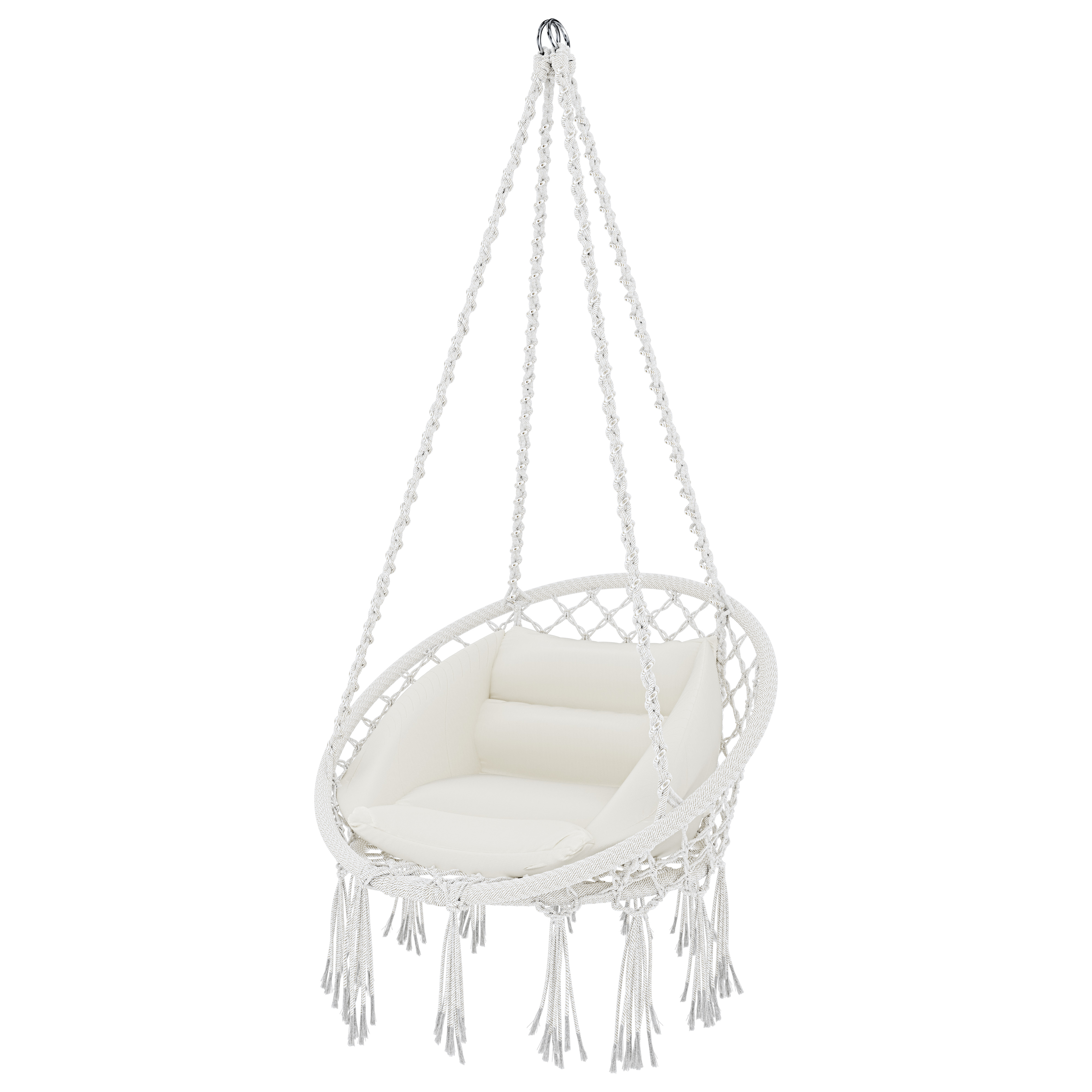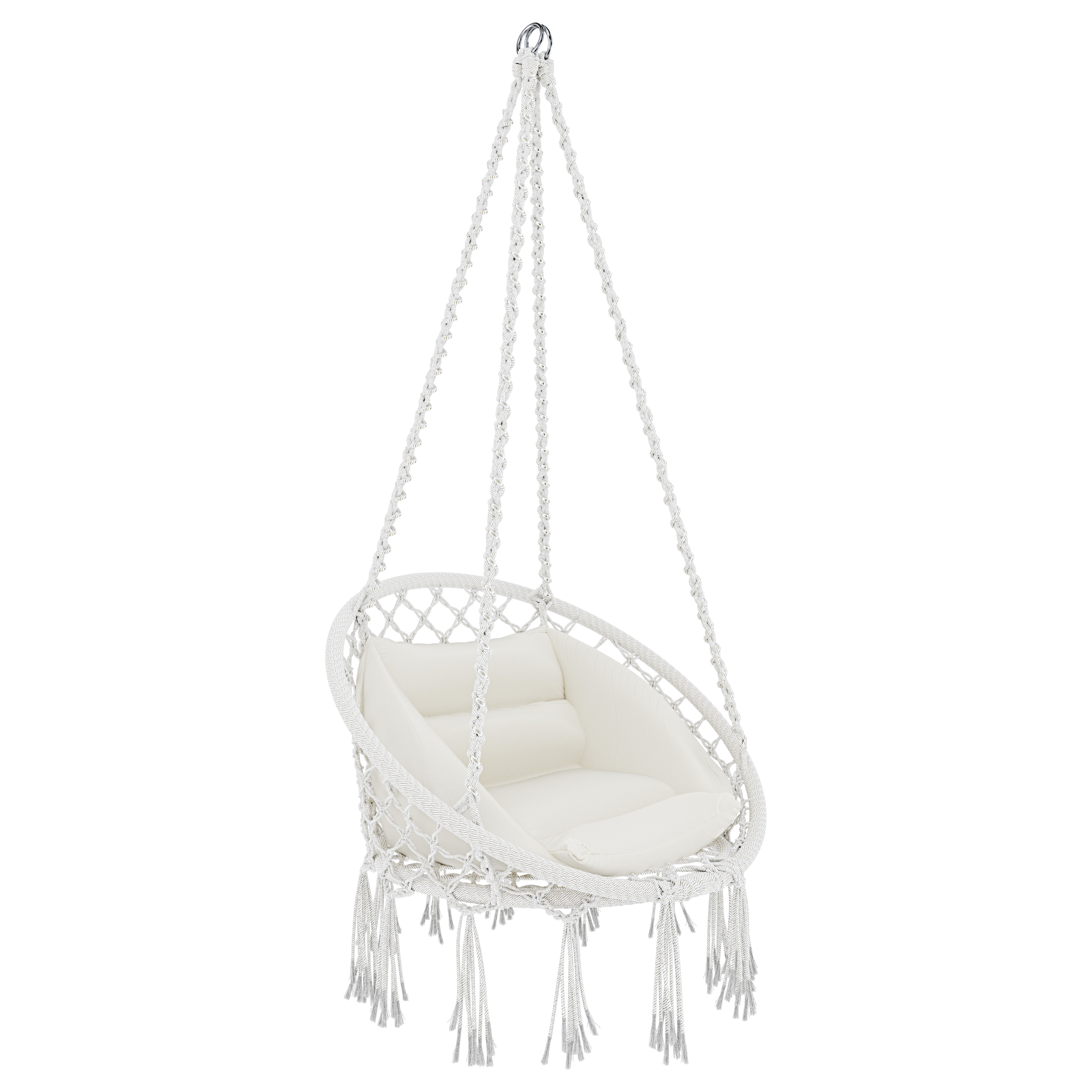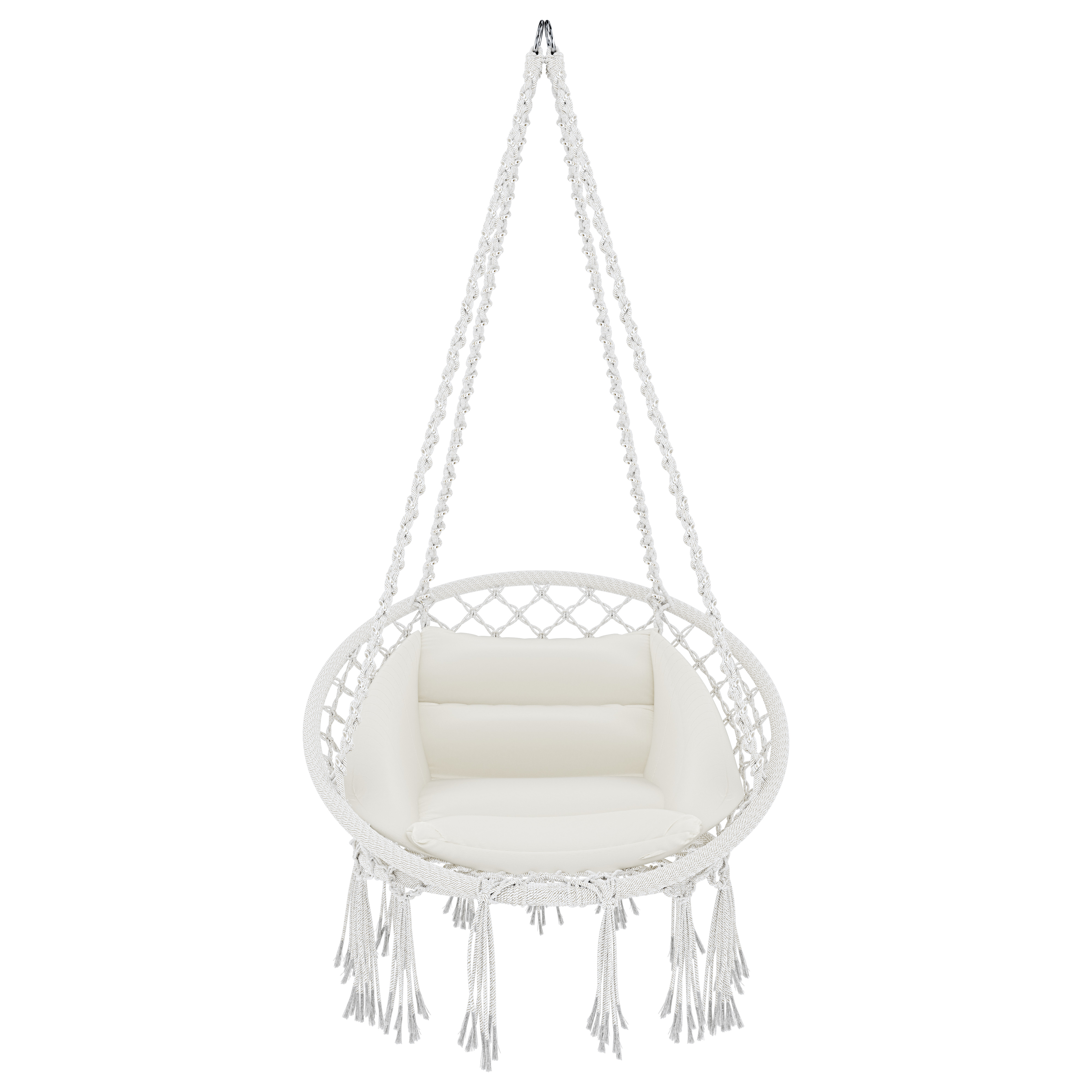 Poltrona Sospesa Pensile Da Giardino Con Corda In Cotone Effetto Macramè E Struttura In Acciaio Cuscino Sedia Dondolo Amaca Con Seduta Imbottita Esterno Terrazzo Design Moderno Fino A 160 Kg Beige